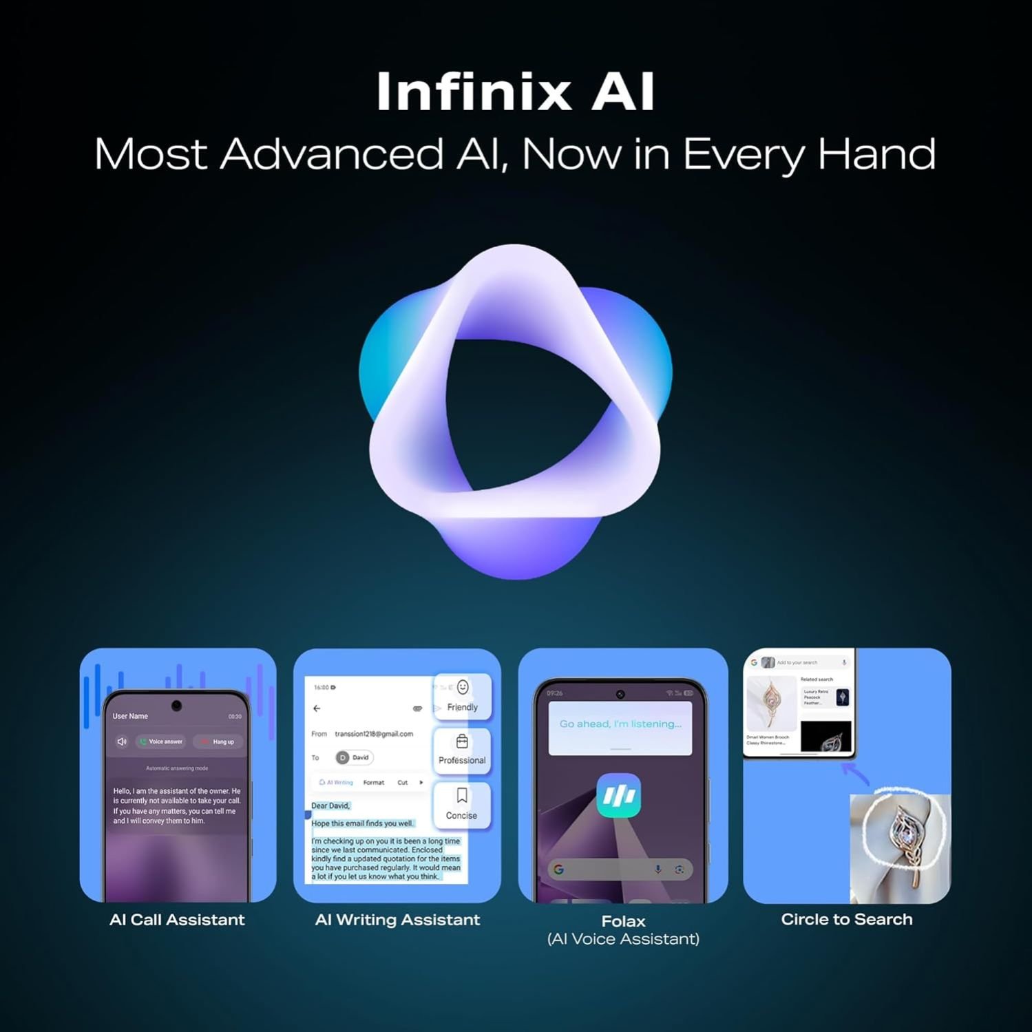AI Features: Folax AI assistant, customizable One-Tap AI Button