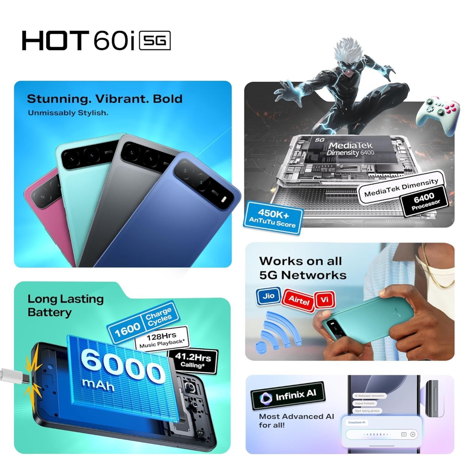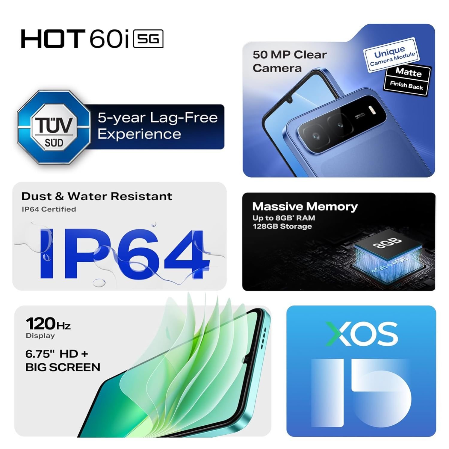 The Infinix Hot 60i 5G stands out as a budget-friendly smartphone, offering a blend of performance, camera capabilities, and connectivity features. Its large display and robust battery make it suitable for users seeking an all-rounder device without a hefty price tag.