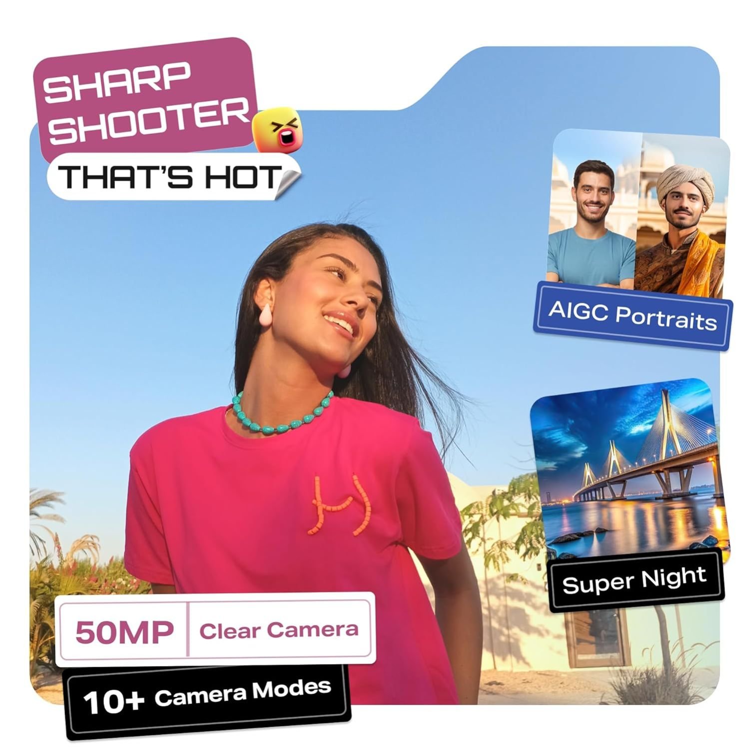 4 GB RAM | 128 GB ROM 17.14 cm (6.75 inch) HD+ Display 50MP Rear Camera | 5MP Front Camera 6000 mAh Battery Dimensity 6400 Processor