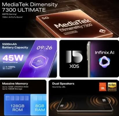 6 GB RAM | 128 GB ROM 17.22 cm (6.78 inch) Full HD+ Display 64MP + 2MP | 13MP Front Camera 5500 mAh Battery Dimensity 7300 Ultimate Processor