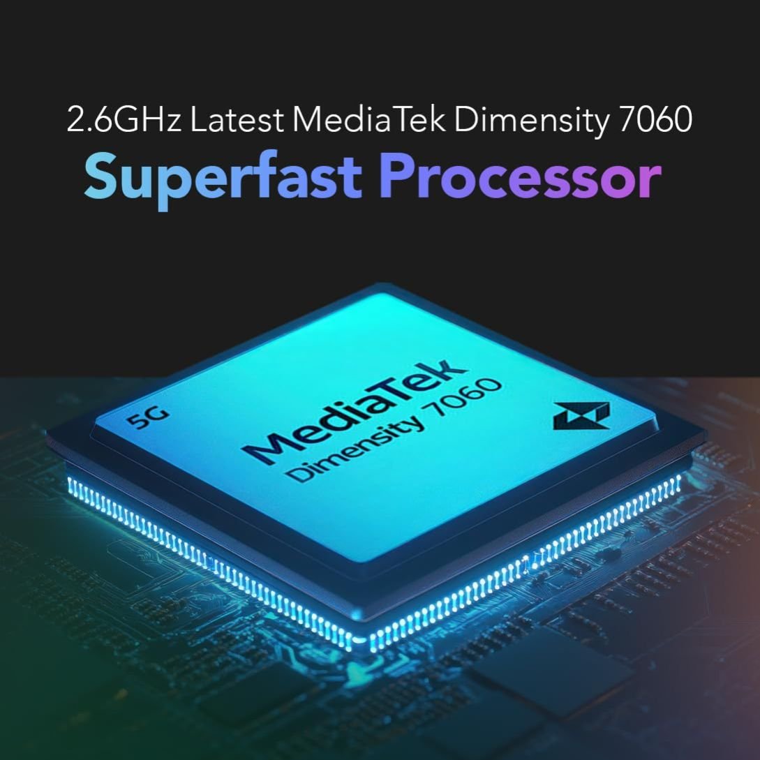 Powered by MediaTek Dimensity 7060 5G chipset, built for efficiency and speed.