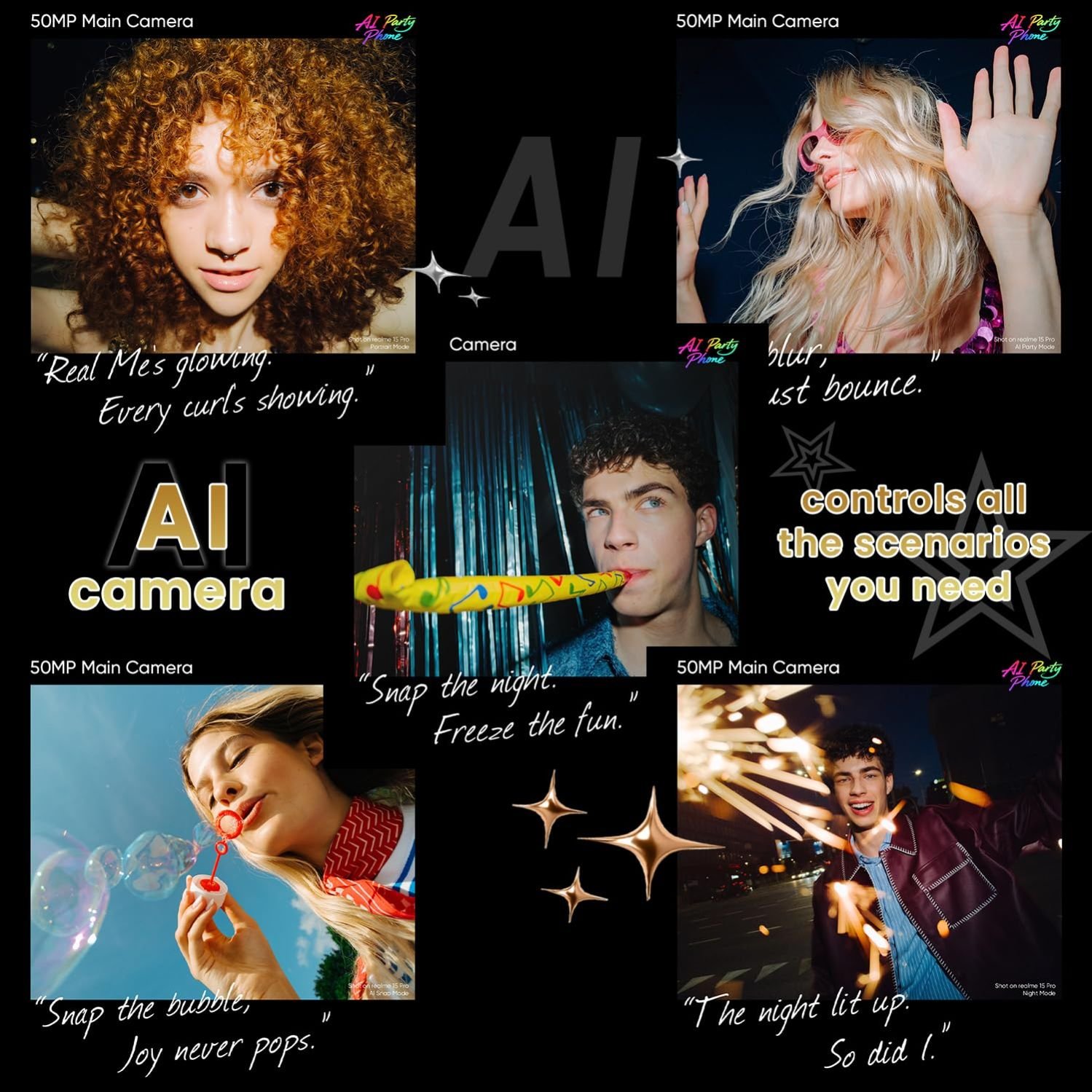 AI Features: Equipped with AI Party Mode and AI Edit Genie for enhanced photography and editing.