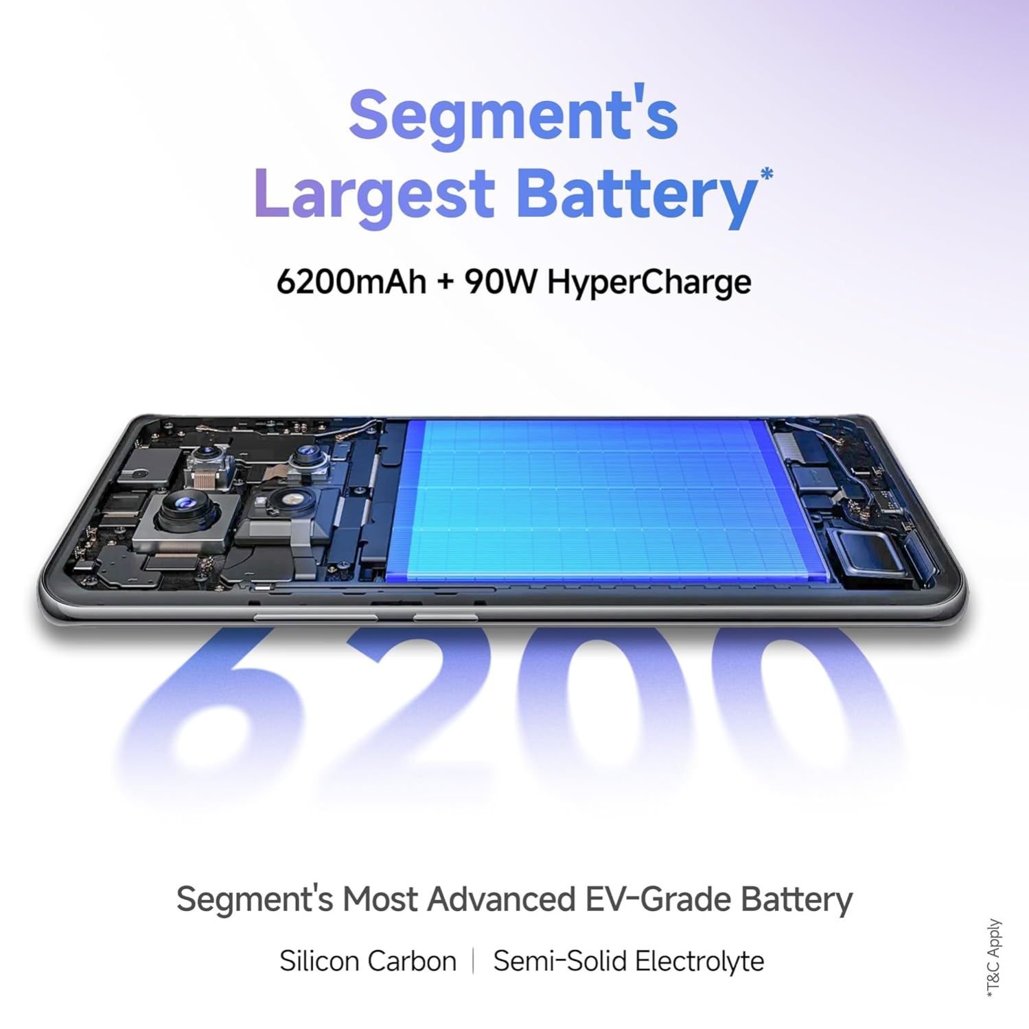 Massive 6,200 mAh Silicon-Carbon EV-grade battery.