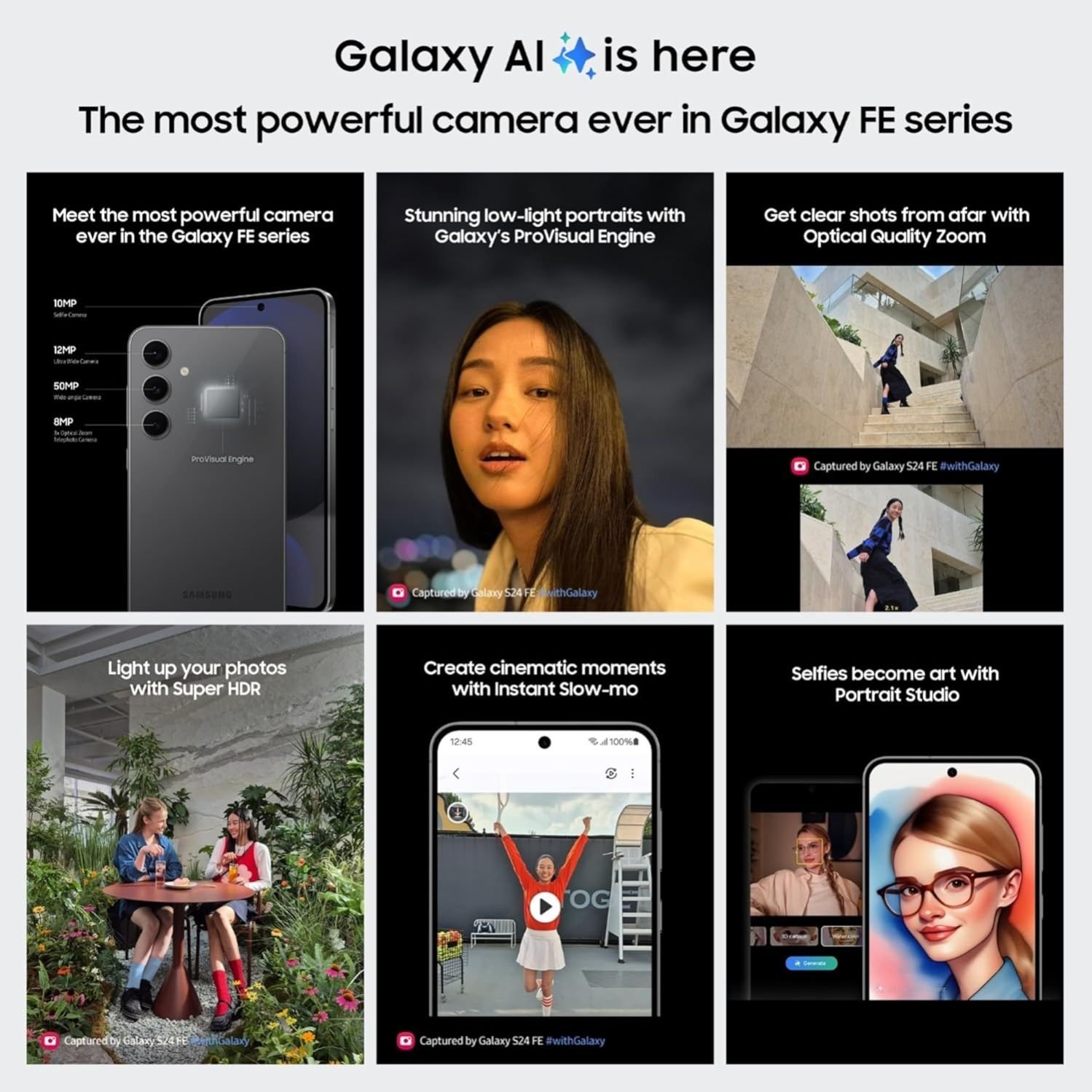 Galaxy AI suite: Circle to Search, Live Translate, Portrait Studio.