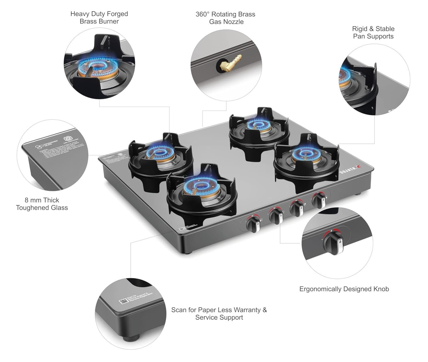 Sujata Deluxe 4B Auto Ignition Gas Stove – Feature Highlights